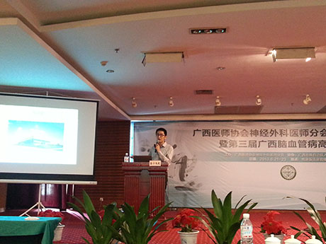 2013年6月22-23日,广西脑血管病高峰论坛在南宁举行。全区近二百名神经外科专家、学者共聚一堂,对脑血管病、颅内肿瘤、脊柱脊髓病变、脑外伤、脑积水、蛛网膜囊肿、颅内感染、癫痫及其他先天性疾病等问题进行了学术讨论。