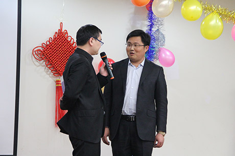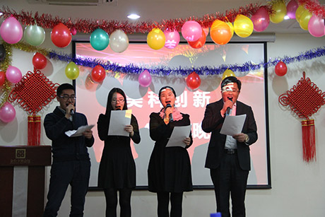 710公海创新的同事们还安排了丰富多彩的表演,四位主持人正在主持晚会